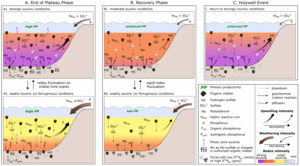 In modern oceans, the impact of climate change is visible in the expansion of oxygen minimum zones (Breitburg et al., 2018; Grégoire et al., 2021; Schmidtko et al., 2017). Studies of intervals of past ocean deoxygenation, such as OAE2, clearly show that biogeochemical feedbacks linked to climate change can result in changes in the availability of dissolved sulfide. Linked to this, changes in sulfide availability above a tipping point may lead to extensive recycling of P, thus driving more intense local and global anoxia. In this context, more research is required to identify the precise tipping point(s) and parameters that may drive the ocean system to an extreme reducing condition.