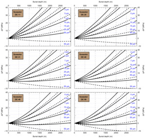 Under sediment burial, Pext is affected by geothermal gradient as well as lithostatic loading, itself a function of sediment density. These additional parameters become necessary considerations for the determination of sample history and risk of plastic deformation/damage to inclusions (fig. 1D).