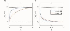 \begin{aligned} p_{c}^{1} &= \frac{\xi\mu_{2}(1 - \varphi)^{2}(1 - \Theta)}{\Theta\varphi\left( \xi + (1 - \xi)\varphi \right)}\frac{d\xi}{dt}\\ & \quad + \chi Y_{1}(1 - \varphi)\frac{\mu_{2}\xi + (1 - \xi)\varphi\Theta\mu_{1}}{\mu_{1}\Theta\varphi} \end{aligned}\tag{50}