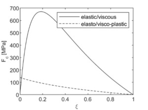F_{c}^{plastic} = Y_{1}\ln\left( \xi + \varphi(1 - \xi) \right) + p_{e} \tag{55}